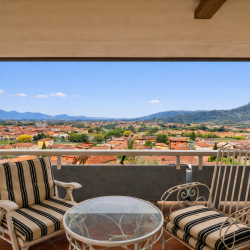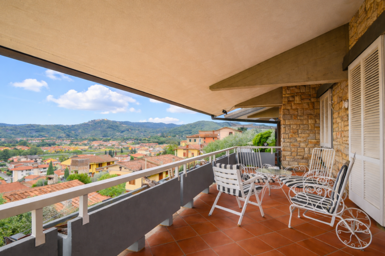 La seconda camera matrimoniale è caratterizzata da un arredamento di ottima qualità con letto queen size e una comoda cassettiera. Da qui si accede ad un terrazzo privato che offre anch’esso la vista su tutta la Valdinievole.