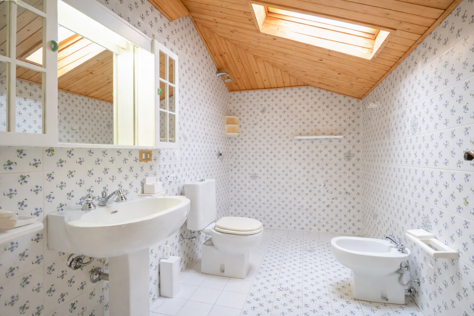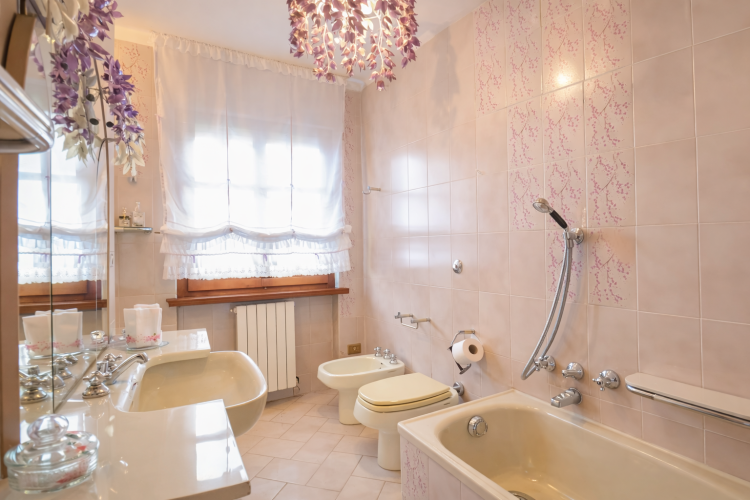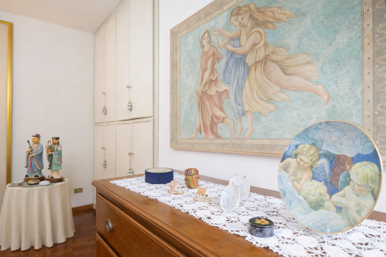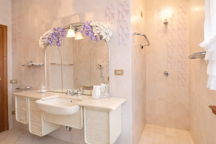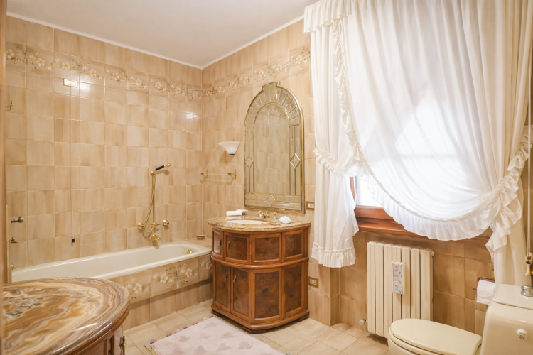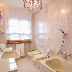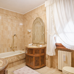 Oltre a quello ‘en suite’ con vasca, sono presenti altri tre grandi bagni, tutti completi di doccia. Uno dei bagni ha la particolarità di avere mattonelle firmate dal famoso stilista Valentino Garavani.