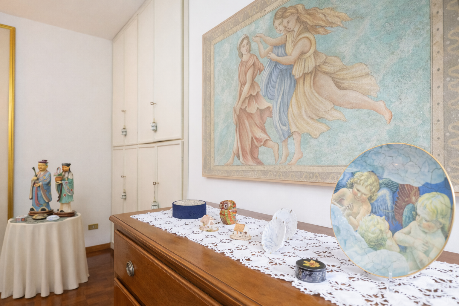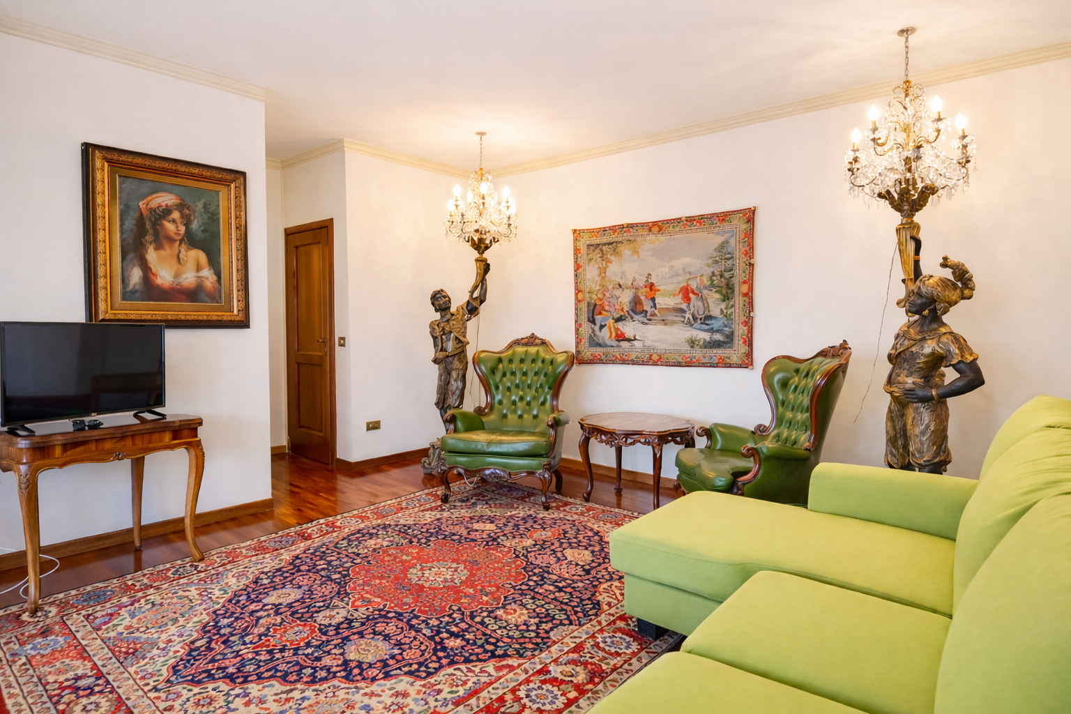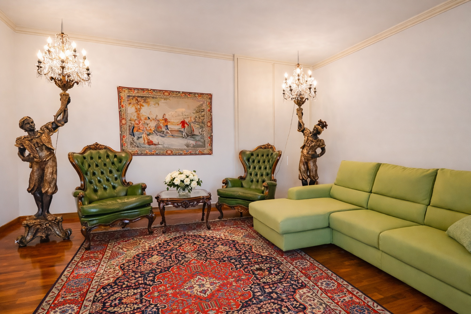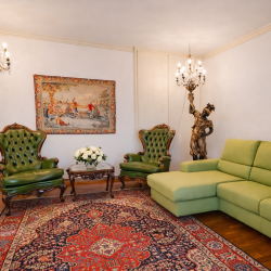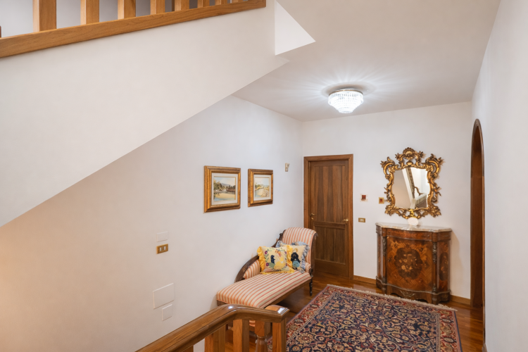 Il salone principale è il cuore pulsante della villa: un ambiente di rappresentanza, luminoso e maestoso, arredato con mobili d’epoca di grande pregio. Qui il tempo rallenta, invitando al relax, alla conversazione e alla condivisione. Le grandi aperture conducono direttamente al terrazzo panoramico, creando una perfetta continuità tra interno ed esterno.